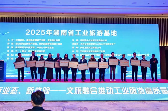 2025年12月12日,第二届湖南工业旅游推广活动暨第四届株洲旅游发展大会——工业旅游“场景焕新”展示与供需对接活动在株洲举行,浏阳市庆典烟花、株洲北斗研学基地等21家企业和单位被授予“2025年湖南省工业旅游基地”称号。
