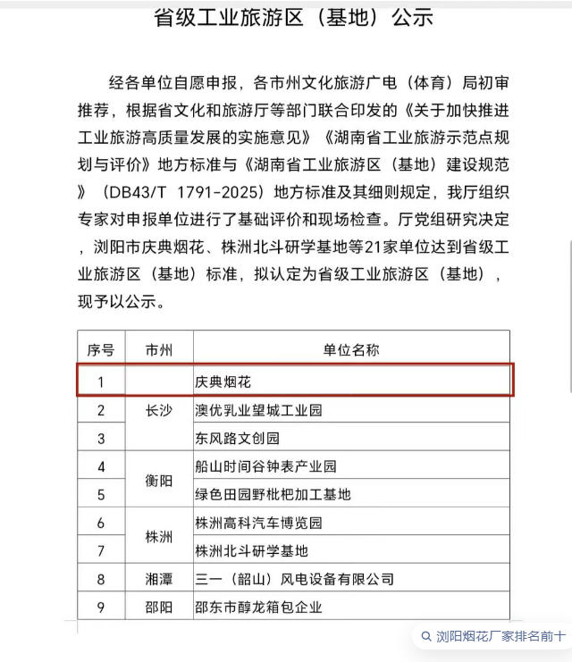 | 庆典烟花获评湖南省级工业旅游区 | |||